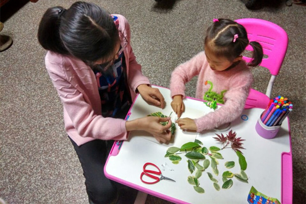 孩子们与爸爸妈妈来到户外,共同采集各种树叶,有银杏叶、红枫叶、杨树叶、柳树叶、梧桐树叶……家长与孩子一起想象、构思、拼贴,一幅幅独具创意的树叶粘贴画跃然纸上。孩子们还用彩纸、添画的方式对树叶画进行再装饰,撕一撕、贴一贴,画一画,用稚嫩的小手展现了更具童趣的作品。老师把这些树叶画布置成“五彩树叶展览会”,不仅让孩子开阔了眼界,还成为了班级环境创设的一大亮点。