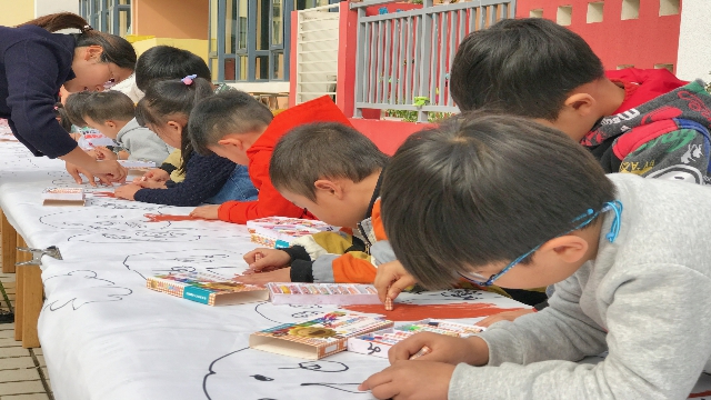 11月2日上午,彩虹幼儿园在操场上举行“百米长卷 放飞梦想”百米长卷绘画活动。