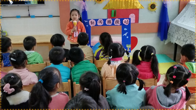 活动中,教师首先通过视频和图片帮助幼儿了解各类电视台、报纸等新闻传媒工具,并有意识、有目的的了解记者的工作。其次,教师组织孩子们带上“记者证”,拿起小话筒,认真地播报新闻、天气、采访观众,他们大胆自信、言语流畅,赢得了阵阵掌声。教师不断强化角色意识,积极引导幼儿以记者的身份,采访幼儿园老师、阿姨、小朋友们,请他们来回答幼儿自己想知道的问题和事情,来发现和了解幼儿园似乎熟悉却又陌生的种种事物。