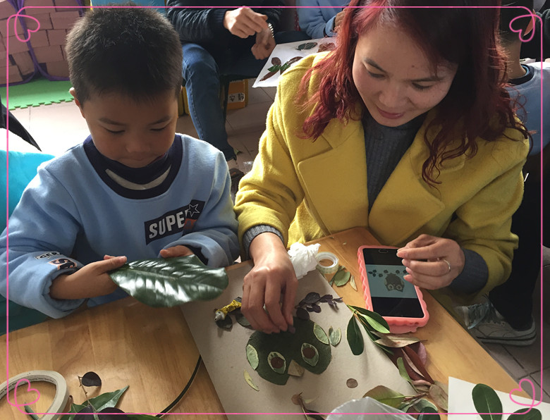 活动的流程从早晨入园开始,家长和孩子们一起游戏,一起活动,有了爸爸妈妈在一边的热切关注,孩子们比平时更为活跃。各班老师根据幼儿年龄特点,安排了丰富多彩的集体教学活动,朵朵一班开展的亲子制作:《树叶拼贴画》,家长和孩子一起制作增进了亲子间的感情;朵朵二班开展了语言活动《彩色牛奶》,孩子们好奇的知道了牛奶可以变色的原因;朵朵三班开展了音乐活动《买菜》,说唱教学非常吸引孩子们的兴趣;朵朵四班开展了美术活动《向日葵》,多种绘画手法使家长感受到了孩子们课堂上的快乐。课后每个班级开展的民间游戏更是精彩纷呈,有抢椅子、马兰花、拍山墙、老鼠笼等,家长们和孩子共同参与游戏,热情高涨,仿佛回到了自己的童年时代。
