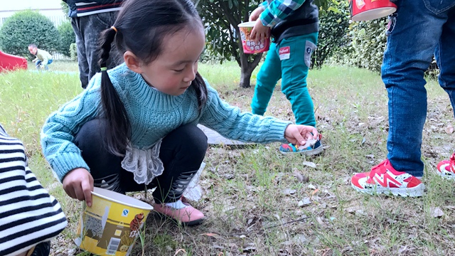 “垃圾不落地,环境更美丽”,孩子们一路拾垃圾一路喊着响亮的口号走过一条小路,发现路边有很多垃圾,美丽舒适的环境就这样被破坏了。小班的孩子们手拿环保纸桶,一个个变身成为环保小卫士,排着整齐的队伍出发了。捡垃圾“环保活动”开始了。小朋友们捡垃圾时很是认真,弯下腰来仔细寻找,有的捡到了很多的落叶;有的捡到了隐藏在草坪里的糖果纸、零食包装袋;有的捡到了冰棒棍、苹果核、废纸、空瓶子等。三五成群的竞相比赛捡垃圾,个个都是环保小卫士。