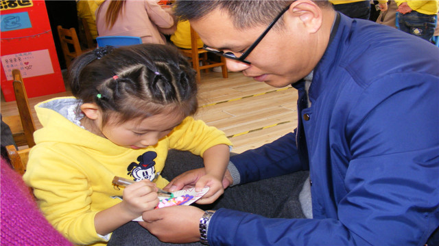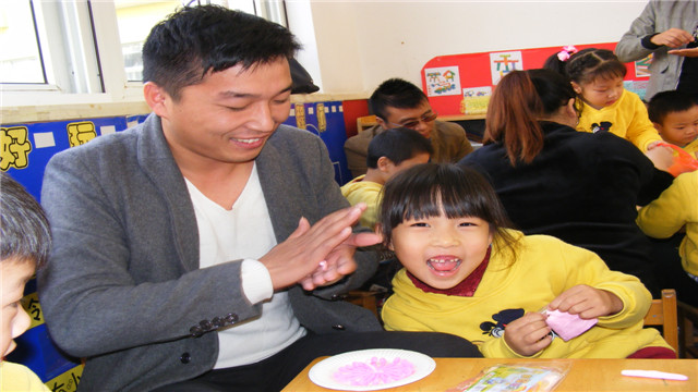 活动前,老师带领大家一起欣赏了美丽的菊花,了解了制作菊花的材料:超轻黏土、纸盘,然后介绍了用彩陶做菊花的制作过程。在随后的亲子制作过程中,家长和小朋友一个个火热开动,做得都很是认真,亲子间默契配合,一朵朵菊花跃然纸盘上,栩栩如生。最后孩子们与老师将漂亮的菊花一起粘贴到展示墙上供大家欣赏。