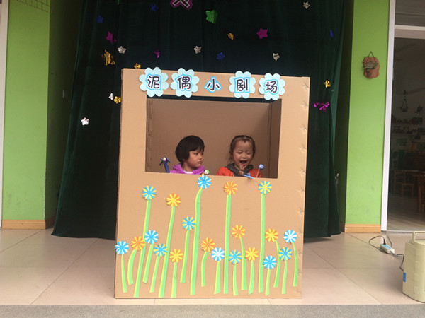 孩子与家长共同制作的泥偶变成了小道具,废旧的纸箱摇身一变可不就成了“电视机”了么。帷幕拉开,表演就开始了。“小熊和小狐狸玩滑滑梯,小熊手没有扶好,一不小心摔了下来·······”小演员们流畅地讲述起来,讲到滑稽之处,忍不住笑了起来。小观众们听到动情之处纷纷鼓起掌来。把舞台交给孩子们,小演员们自主选择故事内容,经过简单的彩排,剧场传来了响亮的故事声。