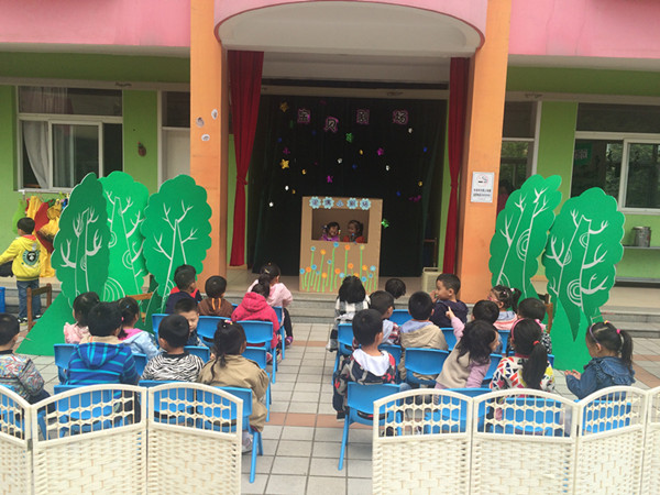 近日,红梅东村幼儿园将陶艺特色搬上了表演舞台,瞧,泥偶小剧场开演啦!表演者在“小电视机”里用泥偶表演故事《橡皮膏小熊》,而小观众们凭票入场选择座位。这一教学楼前空地的充分利用,俨然将其变为小舞台剧的现场。孩子们爽朗的笑声回荡在幼儿园中,幼儿园就是孩子们的乐园。