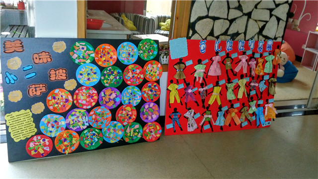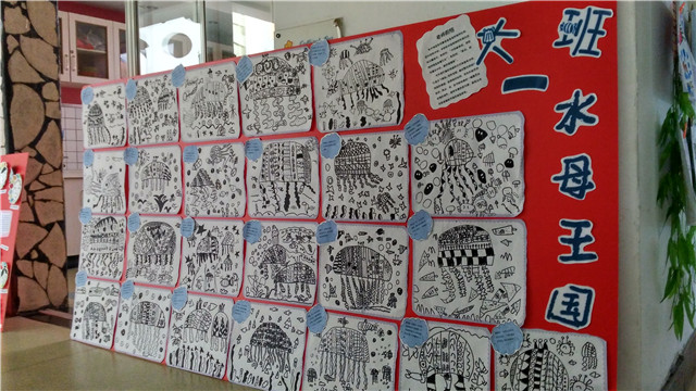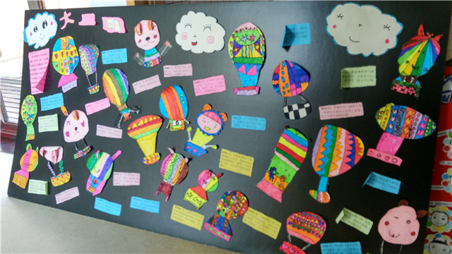 一个个夸张的形象,一块块大胆鲜明的色彩,一件件带着奇思妙想的稚气造型,充分展现出孩子们敏锐的感受力、非凡的想像力和奇特的创造力,处处闪烁着童心的光彩。每个班级展示了同一主题下孩子们的系列作品,用童言引出童画的构思,用童画促进童言的发展。每个班级的展出版面,除了孩子们的作品,还有老师的话,说说活动的意图。孩子的话,介绍自己的作品。孩子们通过一次次的多元美术创作,获得了绘画与语言的双发展。