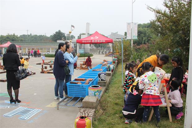 11月7日上午8:30,与会代表180人、本市各区姐妹园教师200余人同时莅临东青幼儿园,就幼儿园课程游戏化实践进行交流与学习。活动中,老师们首先聆听东青幼儿园课程游戏化实践的简要介绍。随后,观摩幼儿园户外游戏和区域游戏。观摩中,幼儿园丰富的游戏材料、新颖的游戏创意、专注的游戏状态、美观的环境布置引起了与会老师浓厚的兴趣。她们每到一处都用照相机和摄像机记录着自己所见的点点滴滴,每到一处都和孩子们讨论着游戏的零零种种,每到一处都在询问着老师们关于游戏中的各类话题,每到一处都会发出:“一所农村幼儿园,做得这么好,真棒!”的感叹……