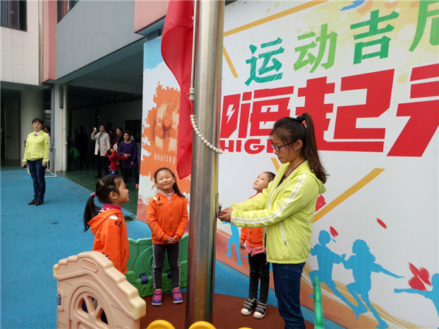 上午9点,第六届体育节开幕式以“运动吉尼斯,嗨起来!”为主题正式开始了,全体幼儿在各班教师的组织下来到操场,在钱老师激扬与热情的主持下,全园师生怀着饱满的精神状态进入了会场。紧接着,全园师生在庄严的国旗下举行了升旗仪式,届时大四班林洛辰代表全体小朋友发言,随后谢园长针对开幕式作了重要致辞,并鼓励大家积极的加入到体育节中来,让运动吉尼斯,嗨起来!同时为本届体育节的举行致以圆满的祝愿,并致以运动会圆满成功。