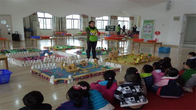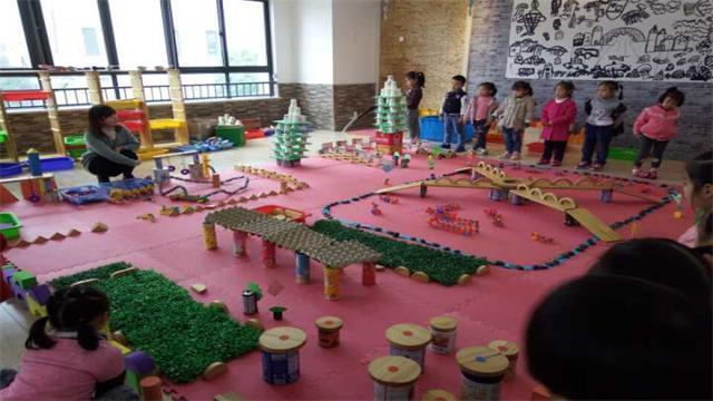 区域活动是孩子们自我学习、自我发现、自我探索、自我完善的活动,尤其是建构游戏区活动深受孩子们喜爱。我园老师们根据孩子的年龄特点、兴趣与需求,发动家长、孩子一起收集各种易拉罐、奶粉罐、大小纸盒、纸杯等废旧物品和半成品用于建构活动。活动建构主题由各班自定,材料自备的原则,给予教师和幼儿充分的自主空间,各班根据幼儿的年龄特点,设计了丰富多彩的建构游戏活动。积木搭建的城堡、插管玩具拼插的花圃、停车场、运动器械,雪花片组成的花朵纸杯搭建的围墙、宝塔等等。孩子们用自己灵巧的双手搭建拼插出了一件件栩栩如生的作品。而且潜移默化地学会珍惜、热爱环保,体现出“游戏中学习、快乐中成长”这一育人理念。