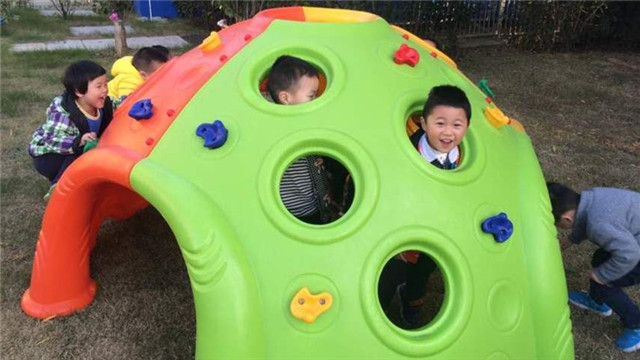 阳光明媚,丽华第二幼儿园户外自主游戏特别热闹,孩子们像欢快的马儿一样奔向自己喜欢的游戏场。 新园建成后,幼儿园结合孩子的年龄特点和动作发展情况,精心准备活动器械,设计游戏方案,分别展示了各具特色的游戏活动。小班设计的“爬格子”的游戏,抓住幼儿对爬行活动的兴趣,通过形式多样,难度递进的爬行方式,发展了幼儿的平衡以及手脚协调能力;中班的游戏,以一块拱形并镂空的设施架在草地上,让幼儿主动探索多种有趣的玩法,例如:“打地鼠”、“躲猫猫”,一物多玩充分调动了幼儿活动的兴趣,发挥了幼儿的主体性和创造性;大班的游戏“齐心协力”,为幼儿创设了一个自由宽松的游戏环境,活动中幼儿的反应能力和与同伴合作游戏的能力得到了发展……