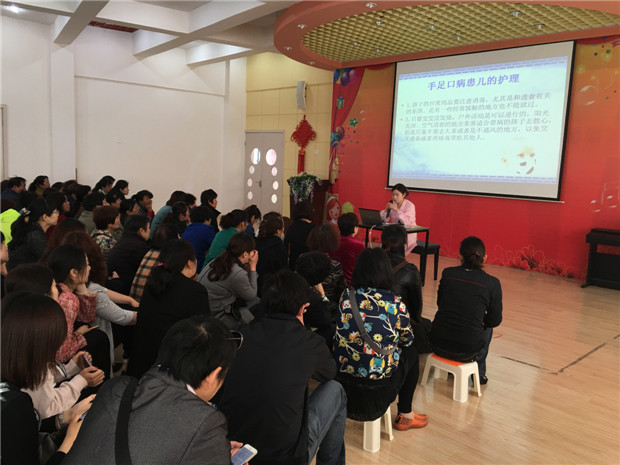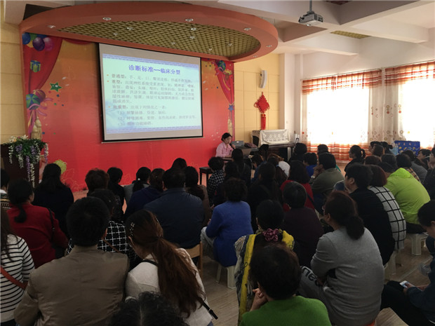 讲座以图文并茂的PPT展示拉开序幕,医生围绕“手足口病”、“水痘”、“流行性腮腺炎”等各种幼儿常见传染病的临床表现、治疗预防、家庭护理等知识,向家长们介绍了从传染病的源头控制、预防方法、隔离措施、消毒方法等方面防控传染病措施,全面做好早发现、早隔离、早诊断、早治疗的防控措施。
