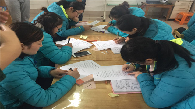 2016年11月17日中午,茶山幼围绕这一问题进行了教研活动。在教研活动中,主持人首先引导教师针对一节事先拍摄好的体育活动引导教师发现问题,课题组老师积极发表自己的意见。其次针对存在的问题,王玉林老师现场组织了一节活动,参加教研的老师扮演孩子,在王老师的带领下愉快、顺利地体验了一节非常有意义的体育活动。