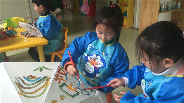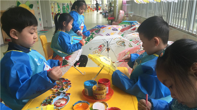 孩子的世界是纯真的,也是新奇多变的。他们就这样用着自己一双灵巧的小手快乐地在伞面上绘画着。