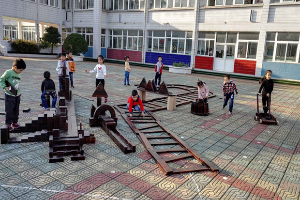 建构区一直是孩子们最喜欢的游戏区之一,为了有效地开展自主建构游戏,今年我们幼儿园为孩子们购买了户外大型碳化积木,让孩子们在户外玩,使得孩子们的游戏空间更加广阔了。