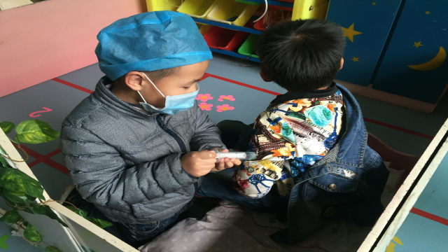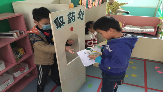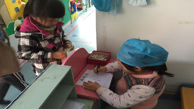 在游戏中,幼儿按照自己的意愿扮演角色。充当医生和护士的幼儿会耐心、细心地为病人看病,嘘寒问暖,悉心照顾等。充当病人的幼儿挂号、问诊、缴纳药费、取药和输液,一步一步就医看病。幼儿通过模仿和想象,独立自主地、创造性地反映现实生活。