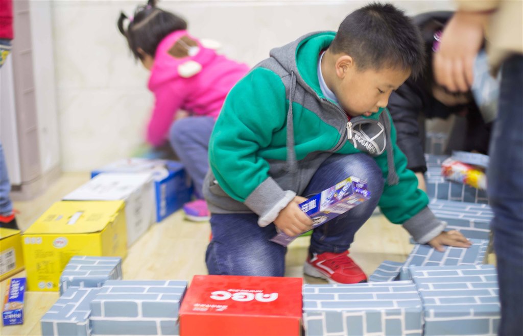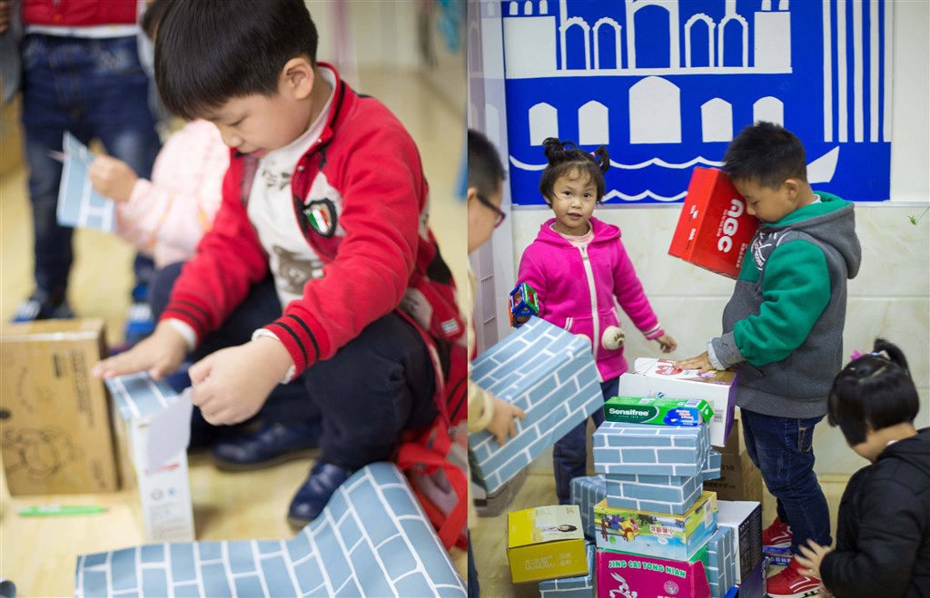 丽二幼:纸盒变“砖头” 废物新玩法