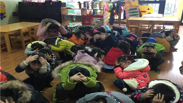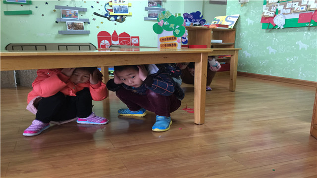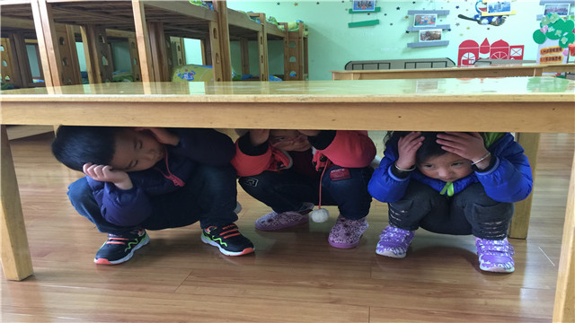 活动中,老师首先通过视频、图片让孩子们了解地震是怎么产生的,其次了解地震带给人们的危害,最后通过现场演练引导幼儿学习自救的方法。