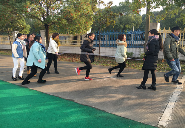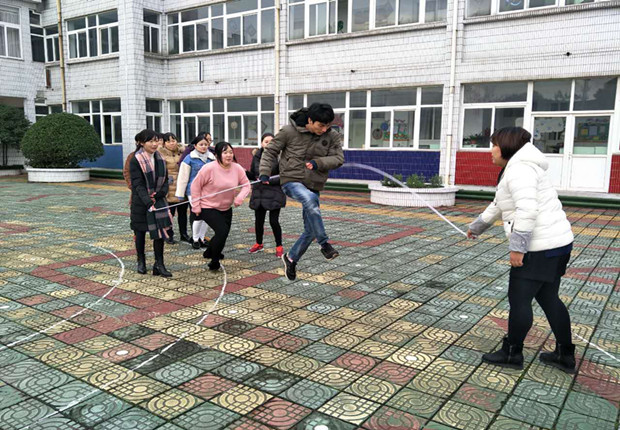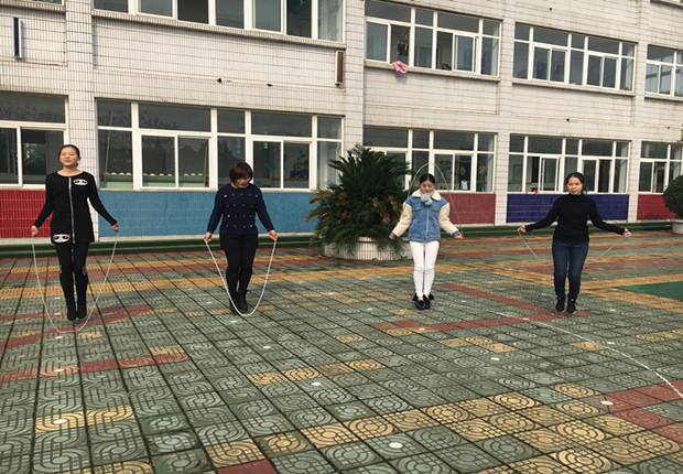 教职工踊跃报名参加本次活动,老师们利用课余时间认真组织练习,掌握了一定的技能、技巧。天气虽冷,但丝毫没有影响老师们参加体育锻炼的热情。忙完手头上的工作陆陆续续来到操场进行训练,校园里顿时人气高涨,欢声笑语萦绕四周。跳长绳是集形体协调、时机掌握、组员配合为一体的集体活动项目,尽管练习中有些老师的动作不够灵活,相互间配合还欠默契,长绳经常中断,但是大家的热情高昂,积极参与精神非常可贵。再把镜头转到另一边