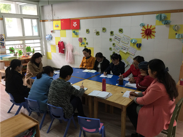 为了给教师创造一个交流、合作、探究的教学平台,提升教师的教学水平,幼儿园每周开展的园本教研活动如期进行。本次研讨的主题是“区域环境的设计”.
