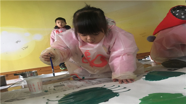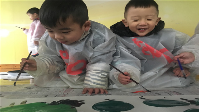 借形想象这一独树一帜的创意美术教育理念,蕴含着丰富的教育内涵和无限遐想,老师们开展《拍想联翩》、《点线之舞》、《曲线变变变》、《奇思妙想》等借形想象活动。在《螃蟹来了》活动中,孩子们手拿生活中的锅子,沾上绿色的水粉颜料,在画纸上尽情的拍打拓印,添画蟹脚,享受着自由创作的快乐,孩子们打开了奇思妙想的大门,整个画面生动形象、趣味横生。