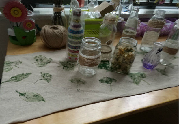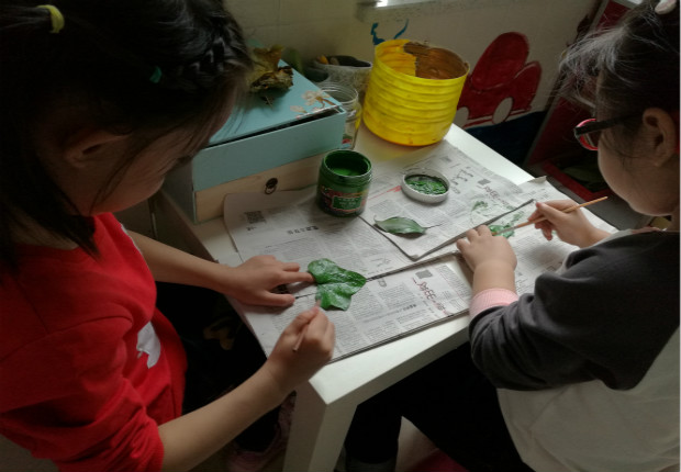 活动前,孩子们搜集了许多常见的叶子,在老师的引导下,孩子们逐一了解了各种叶子的名称和形状,银杏叶、柿子叶、枇杷叶、梧桐叶等叶子各有千秋。在老师的指导下,孩子们像小画家一样,一笔一笔地把颜料涂在自己喜欢的叶子上,然后往老师特意提供的麻布上一铺一印,一片片栩栩如生的叶子再次重生,孩子们顿时为自己的创作发出欢呼声。