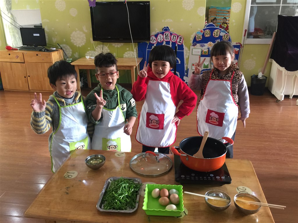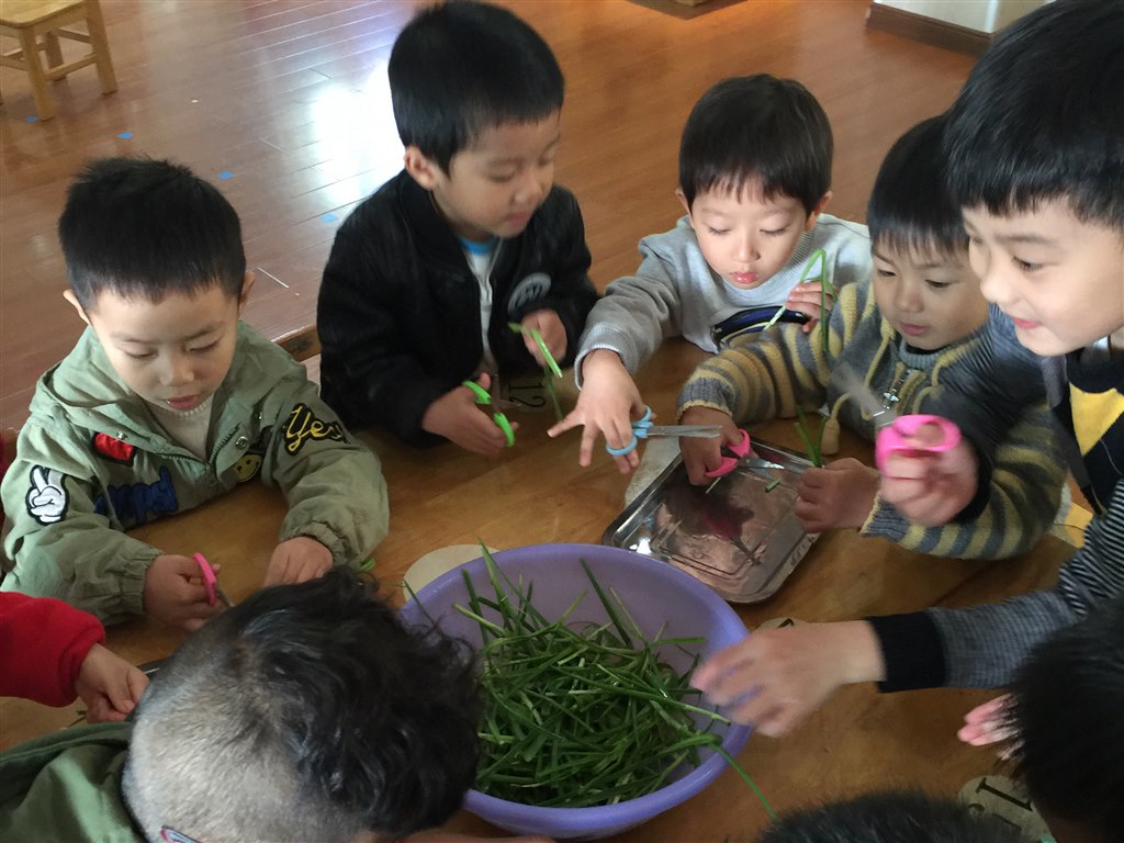 活动开展后,每天早晨、课间及放学后都会有见到小朋友来为大蒜宝宝们浇水、清理,观察。从中发现它们的变化,感受蒜宝宝慢慢发芽、长叶、长高,并把它记录下来。总会听见有小朋友议论纷纷:“看!我的大蒜发芽了”,“你看,我的蒜宝宝它长叶了”,“看我的,我的大蒜长得最高”......活动最后,孩子们还自己剪切、清洗蒜苗,做起了还吃的鸡蛋蒜苗饼!