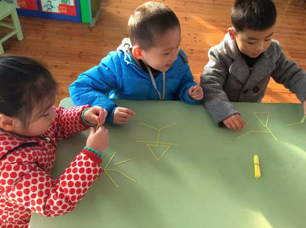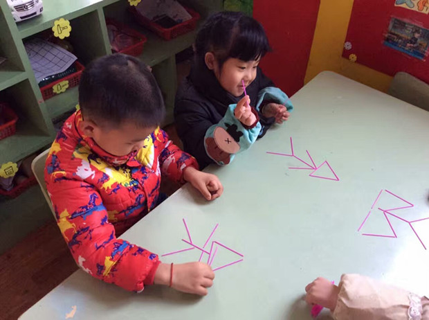 在数学活动中,为了让孩子们学习数量间的关系,我们常常会用塑料棒来帮助幼儿掌握相应的知识。今天,我们大班的小朋友大胆创新,用这小小的塑料棒玩起了更多有趣的游戏,充分发挥了小棒的作用,同时也发展了幼儿的想象力和创新能力。