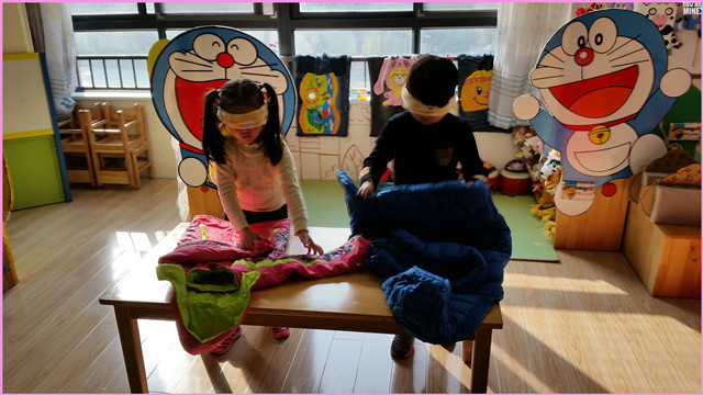 活动中,幼儿在老师的指导之下,首先观看了有关残疾人群体的图片,了解“世界残疾人日”的由来和意义,让幼儿了解残疾人身残志不残的坚强意志,如中国残疾人作家张海迪、著名数学家中国科学院院士华罗庚、传奇物理学家霍金等传奇人物。其二,通过角色扮演进行亲身体验,幼儿通过亲身体验,让孩子们肢体模仿各种残疾人如蒙住双眼的盲人、闭紧嘴巴的是哑人、捂起耳朵的是聋人。亲身感受各种残疾人的不便与内心世界,萌发同情心,激发关爱之情;最后,通过同伴互助,体验帮助他人的快乐,学会在生活中用自己的实际行动为残疾人提供力所能及的帮助。“我们要帮助残疾的人,不嫌弃他们……”“我奶奶中风,我还帮她洗脸、按摩呢……”“我要画个礼物送给他们!”这是孩子们的心声,言语稚嫩而穿透心灵,令所有人为之动容。现场氛围温馨、和谐,在潜移默化中为寒冷的冬季增添了浓浓暖意。