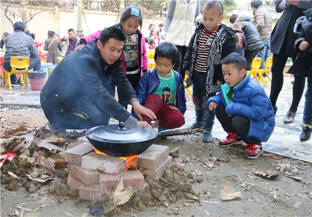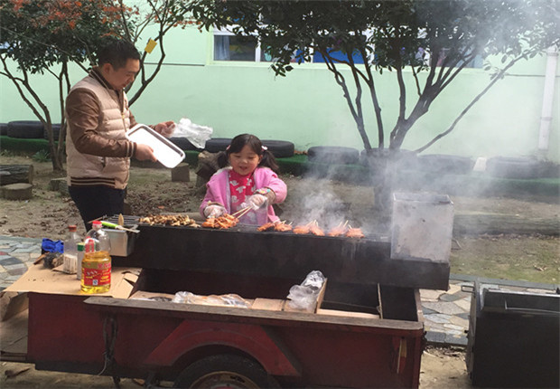 12月1日下午,中一班的老师们带领着孩子和家长们开展了互动趣味的体育活动“落叶舟”和“烧烤小达人”社会实践活动。瞧,林浩老师组织了体育活动,将长凳当成“落叶舟”,让孩子们通过碰一碰、过一过、走一走、换一换等系列游戏,发展平衡能力;游戏中与同伴合作、与家长配合,调整自己,一次次的通过长凳,体验了游戏带来的快乐,激发不畏困难、勇于挑战、团结一致的团队精神;而“烧烤小达人”社会实践活动,我们则利用优质的家长资源把这一实践活动带给了所有的家长和孩子们,一早家长们便准备好了丰富多样的秋季的蔬菜和一些荤菜让孩子们带来,孩子们兴致勃勃的做起了“小主人”的角色,认真的洗着每一样菜,认识了秋季的每一样蔬菜的名称,而且还观察到蔬菜的颜色、结构等都是不一样的感受着“小鬼当家”的乐趣,小小洗菜环节为孩子们积累了宝贵的生活认知经验;洗完菜后跟随爸爸妈妈的身影和脚步来到了我们的烧烤阵地----“生态小花园”进行着烧烤实践活动,秋天的树叶晒落一地,秋天的人儿切菜的切菜、串串的串串、品尝的品尝、烧烤的烧烤……同时,林浩老师还发动几位男家长开启了“小灶”,家长、老师和孩子们一起用小铲子挖坑、垒砖、生火……不一会儿的功夫,那一幅“炊烟袅袅人欢庆”的场景在如今的城市一角中别有一番滋味!当一抹白烟飘过的时候,孩子也许呛着了眼,有了泪水,爸爸的一句“宝贝,没事的!继续生火!”孩子抹了抹眼睛看着爸爸依然笑着,那一刻,很感动,那一刻,每个人的脸上无不透着那珍贵的一抹笑容……