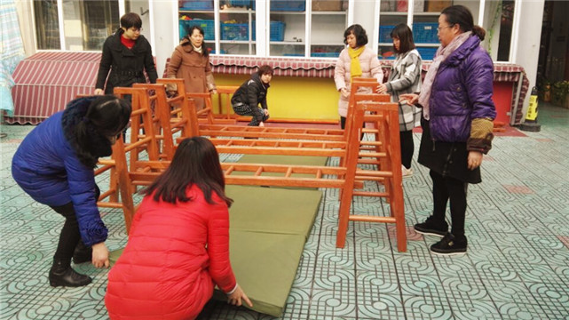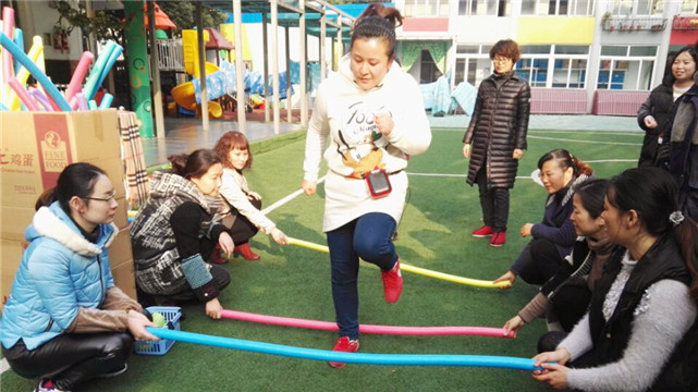 在幼儿园教育活动中,体育活动一直被放在重要地位,我园依据新《幼儿园教育指导纲要》理念,把“保护幼儿生命和促进幼儿的健康”放在工作的首位,十分重视幼儿户外活动的开展。因此,最大程度上利用体育器械,对体育活动开展起着至关重要的作用。十二月二日,翠竹幼儿园全体教师围绕幼儿园体育器械“一物多玩”在操场上展开了本次教研活动。