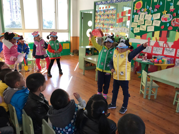 表演活动中,孩子们精心打扮着自己,身穿色彩鲜艳的演出服,头戴漂亮可爱的头饰,用丰富的表情、富有表现力的动作、生动的语言,深深地感染着每一位观众,精美的道具、形象的服装给大家带来了美的享受。让人感受到孩子稚气和天真同时感叹孩子的模仿能力。这样的表演不仅可以使孩子学会各种技能,还可以更好地了解周围的世界,获得认知经验,同时在表演的过程中得到愉悦的情绪感受。