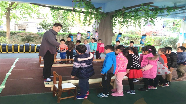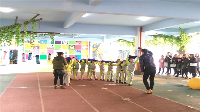 活动中,四所幼儿园的四位教师分别进行了不同年龄、不同领域的课堂教学展示。老师们能在课程游戏化理念的引领下,紧扣自己的活动目标,抓取有效的差异资源,利用各种教学手段开展活动。尤其两位男教师组织的体育活动以游戏形式,引导孩子自主探索各种玩法,在玩中学习,在玩中发现,新颖有趣的活动形式让孩子们兴趣盎然。