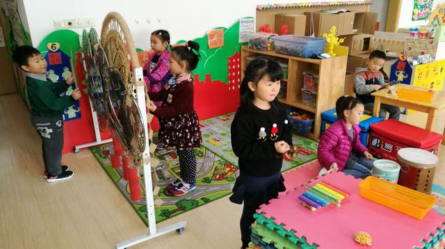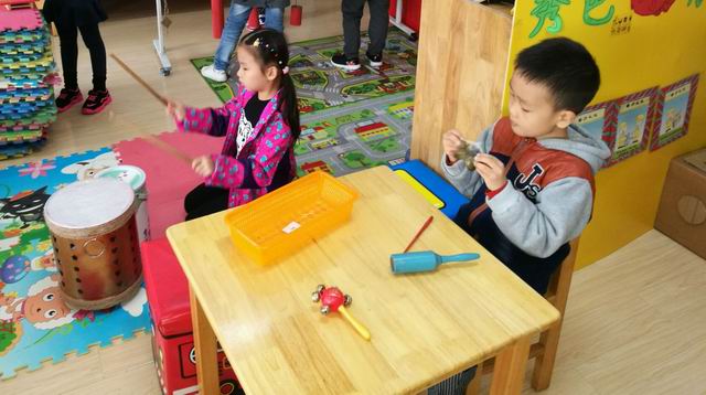 在音乐区角活动中,孩子们随音乐尽情舞蹈,快乐打击,不同音乐出现时,孩子会跟着音乐做不同动作或敲击不同的节奏,时而快、时而慢、时而激昂、时而舒缓,甚至还有孩子将自己编的“原创舞”动作与“打击乐”相结合,由此可见,孩子们的创造力和潜力是无穷的,只有在宽松的氛围下,才能激发他们的创作灵感。我们将在“宽松的游戏化的音乐活动”中,让孩子快乐音乐,快乐游戏,快乐创造。