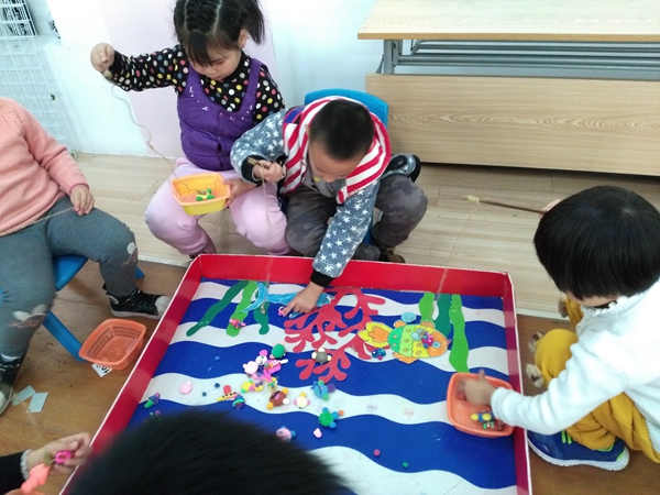 红梅东村幼儿园大班组的叶老师结合本园特色,组织了“乐陶课程游戏化策略的实践研究”课题研讨活动——大班乐陶区域活动“鱼趣”。孩子们在游戏的过程中自主地取放游戏材料,自主的协商游戏的规则。给观摩的老师们展示了快乐自主的游戏行为,大胆创意的游戏精神。活动结束后,各位老师又进行了热烈地研讨,提出自己的不同见解。