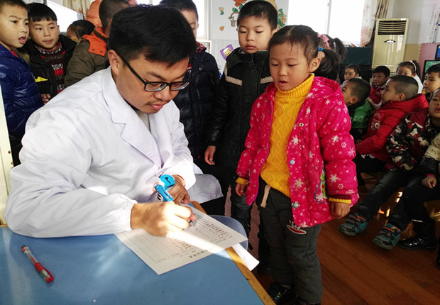 上午9点医生准时来到我园,从大班开始逐个班地为幼儿检查牙齿发育情况。通过龋齿检查,了解到有大部分幼儿存在龋齿方面的问题,对于个别龋齿较严重的幼儿医生还耐心地讲解了保护牙齿方面的常识。如:早晚要刷牙、不能多吃甜食、要养成餐后漱口的好习惯和刷牙的正确方法等。他们还对口腔有问题的孩子进行了详细的口腔检查记录,并填写了家长回执单,使家长能及时了解幼儿口腔存在的问题, 以便能够积极治疗或采取相关措施,密切关注幼儿的口腔卫生。