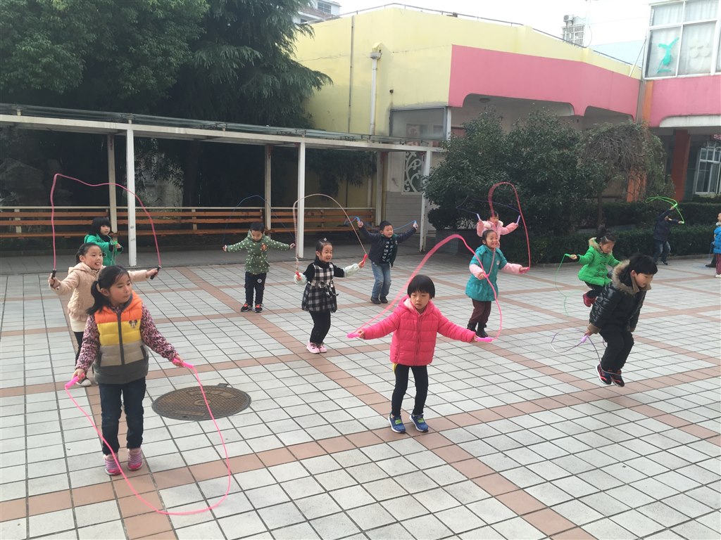 跳绳是我们大班幼儿常规运动项目,自10月起,大班的孩子就开始练习跳绳,有的孩子已经有点会跳了,有的孩子经过反复的练习,已经能够连续跳30个以上,个别孩子虽然还不会跳,但是也没有气馁,一次一次的在寒风中练习。
