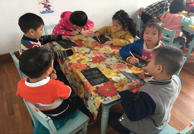 秋天是个色彩斑斓的季节,秋天的树林更是有多种颜色,有红色、有绿色、有黄色……,怎样让这么美丽的景色展示在自己的画纸上呢?近日,红梅中心幼儿园中班年级组的孩子们,展开了热烈的大讨论。最终孩子们尝试了刮蜡画。刮蜡画是在黑色的背景上,透出各种颜色所组成的图案。刮蜡画以其神奇的作画工具,简便的操作,受到了孩子们的喜爱。
