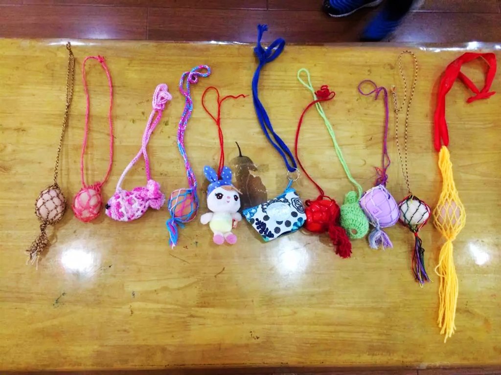 家长与孩子一起想了很多护蛋方法,并找了各种小盒子、一次性杯子、棉花、废旧的布绒玩具等做成护蛋的辅助工具,他们有的将鸡蛋放在盒子里,用棉花和毛巾包裹好后让孩子背在身上;有的将饮料瓶切开把鸡蛋放进去,周围用软泡沫纸包好,再将瓶子用透明胶带绑好让孩子挂在脖子上;有的将鸡蛋缝制在布袋里让孩子放在口袋中;有的把鸡蛋放进了旧布绒玩具里……