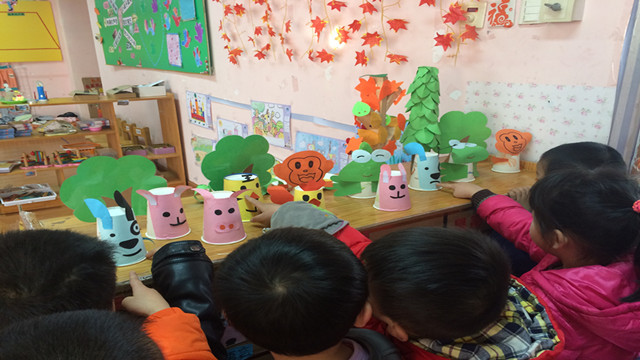 孩子们都积极的参与本次活动,在老师的指导下,愉快的气氛中采用剪、粘合、装饰等多种技能进行制作。瞧!一个很普通的纸杯,经过孩子们的奇思妙想,有的变成可爱小兔子、有的变成憨态可拘的小猪、有的变成淘气的小猴子……看着这些可爱的小动物,感受着纸杯的变化,孩子们欣喜万分。