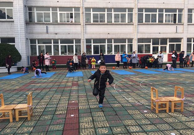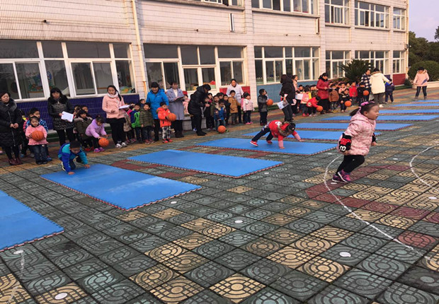 为了让幼儿在玩中乐、乐中学,更好地促进他们的全面发展,我们改变以往单一的拍球模式,将膝盖悬空爬行和助跑跨跳等动作技巧以游戏的形式加入到这次拍球活动中,使活动变得更新颖、更趣味。活动即将开始,各班按班级顺序排好队伍。小运动员们个个摩拳擦掌,跃跃欲试。随着一声哨响,小运动员们在设定的场地先进行单手原地拍球,然后膝盖悬空爬过草地,最后助跑跨跳过小河到达指定地点。他们一个接一个全身心的投入到活动中,其余的小朋友做起了啦啦队员在给小运动员们加油,在一片加油声中活动落下了帷幕,小运动员们似乎还意犹未尽呢!