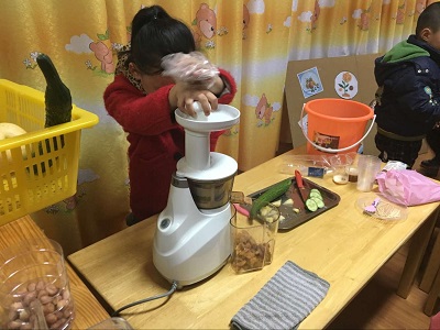 《獾的美餐》主要讲了一只獾没有珍惜拥有的食物,执意要去寻找美餐而最终落得什么食物都没有的下场,绘本告诉孩子们要学会珍惜自己已经拥有的东西。幼儿们在本次绘本拓展区域游戏中合作互动,有的在生活区做水果拼盘、鲜榨水果汁;有的在建构区组件美食餐厅;有的在益智区体验设计营养套餐;还有的在表演区进行快乐的绘本演出。大家在各自喜欢的区域中以游戏作为阅读的拓展形式,玩的不亦可乎,更让他们通过这一系列的拓展游戏对绘本《獾的美餐》的价值内涵有更深入的感受和体验。(发文者:李洁)