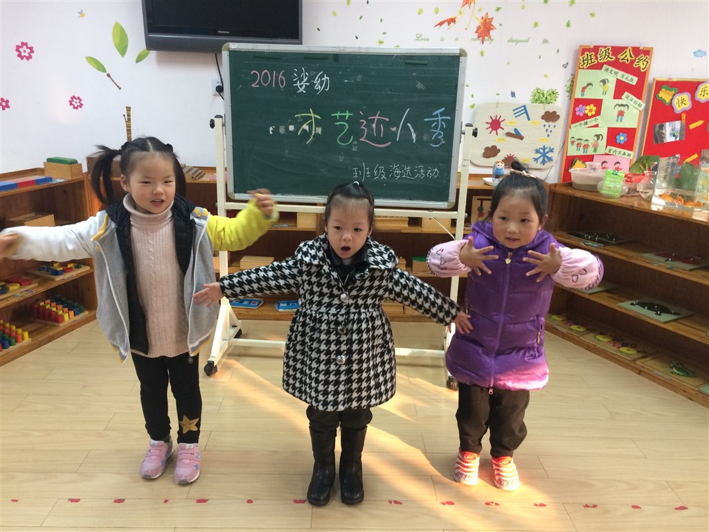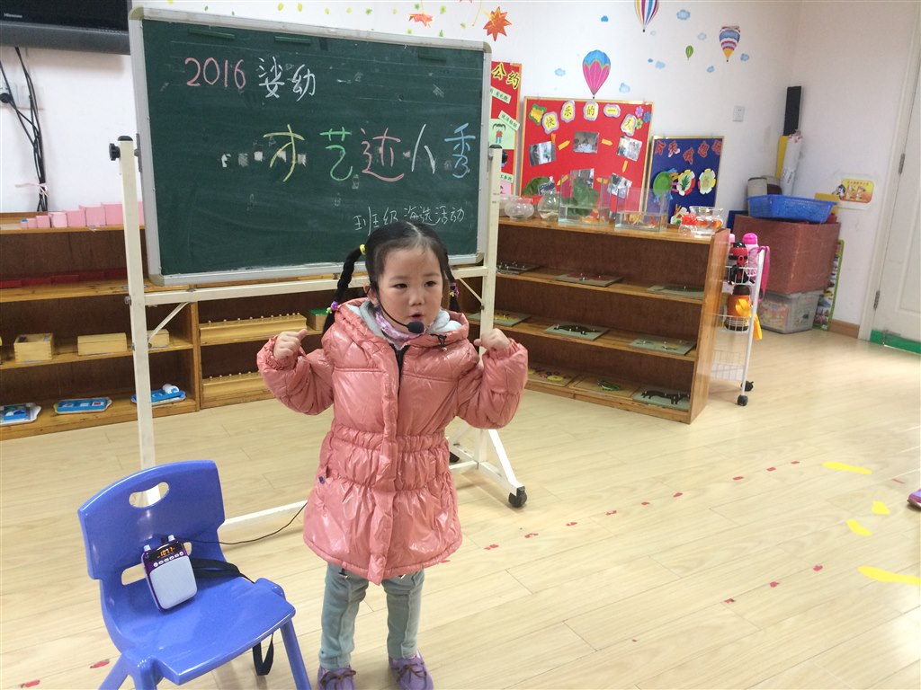 本次活动以班级为单位,内容包括:唱歌、舞蹈、讲故事、背唐诗、螳螂拳等。活动现场,小选手们洋溢的热情与激情充斥始终,活动之精彩阵阵掌声。开场一曲《健康歌》活力四射,点燃了现场热烈的气氛;一首《茉莉花》将在场所有观众引入了一个唯美的世界;紧接着歌表演《功夫宝宝棒棒棒》伴着富有节奏的音乐,又将我们拉回了动感的世界。大家的欢呼声、掌声响彻舞台。小朋友们在这个虽不华丽但却属于自己的小舞台上,大胆地展示了各自的本领,孩子们的表演令人惊喜,富有创意,充满着童真、童趣,欢快的音符,优美的舞姿充满着整个活动现场。整个教室欢声与笑脸相映,歌声与笑声齐飞,小朋友用最开心的笑脸,最欢快的歌舞尽情抒发着快乐和喜悦。