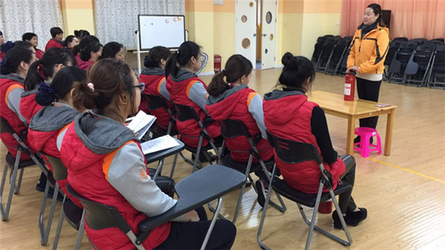 为了增强教职工的消防安全意识,促进大家消防安全的技能提升,2016年12月20日里华润国际红黄蓝幼儿园在王园长组织了对保育老师和配班老师进行消防器材使用的培训。 全力普及消防安全知识,推进校园消防安全宣传工作。 本次培训由我园曾组织过多次培训的王园长对灭火器和消防栓的详细讲解和操作演示,教职工们都认真第学习,并亲自动手操作练习,在练习过程中真正学会使用灭火器材,消防潜意识应该成为每个人必备的基本素质。消防潜意识应该成为每个人必备的基本素质。
