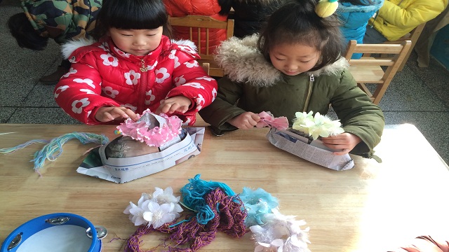 我们的活动得到了家长的支持,他们和幼儿一起收集来了很多废旧报纸。可是废旧报纸太单调了,让我们用水笔给它装饰一下吧!不一会儿,航天飞机、地球妈妈、竹林小屋、跳舞小人等就跃然纸上了。折一折、翻一翻、抹一抹、撑一撑,一顶顶圣诞帽就初具雏形了。为了让圣诞帽更漂亮,幼儿还找来了娃娃家和生活区里的毛线、牛皮筋、夹子、头花等工具,亲手给圣诞帽装饰了起来,编一编、扎一扎、夹一夹,套一套,在幼儿想象力的推动下,圣诞帽变得丰富多彩、创意十足,一点也不比商场里卖的圣诞帽差哦!接下来,就让我们戴着圣诞帽来一场“时尚帽子秀”吧!瞧,戴上自制圣诞帽的幼儿可爱极了,有的说自己像圣诞宝宝,有的说自己像小精灵,有的说自己像王子,还有的说自己像奥特曼、、、、、、、幼儿的想象力真的太丰富啦!