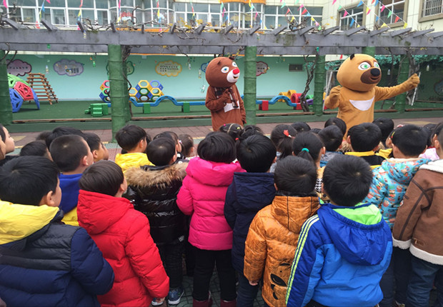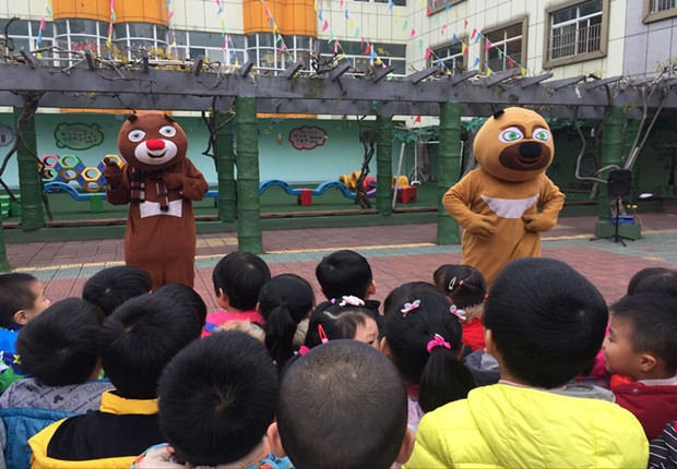 活动中,请来了木偶剧表演,将交通安全知识改编成孩子们最喜欢的童话剧《光头强和熊大熊二》,精彩的表演在孩子们幼小心灵里播下了“文明出行”的种子;在和熊大熊二进行互动中,让孩子们体验了遵守交通规则的乐趣和重要性。