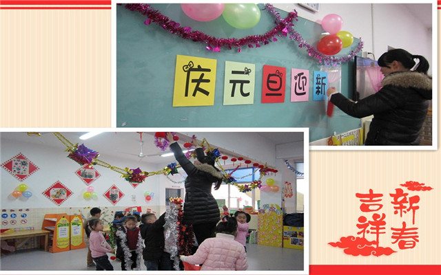 迎新年活动是我园的传统课程内容,它承载着幼儿对于新年的期盼。让孩子一起参与环境布置,体现了以孩子为主题的环境布置理念,每个孩子都在不同的制作活动中感受到了新年的气氛,共同迎接新年的到来!