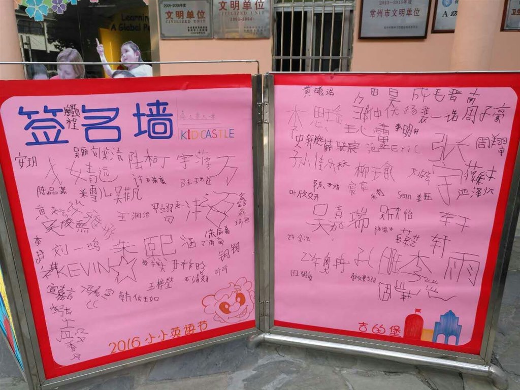 晨间入园时,只见两幅高大的英语节签名墙矗立在园门口,孩子们纷纷将自己的大名签在其上,虽然字体稚嫩却也有几分大牌巨星的风范。活动正式开始了,老师们制作精良的微视频片头既展示了家长和孩子们对本次活动的期待,又将大家一下子都带入了丰富有趣的世界风中。每个班级也派出了自己的“小小国家代言人”,他们用流利的英文和多彩的表现形式介绍着自己班级所属的不同国家的文化和风俗,让所有宝贝们都大开眼界,获益匪浅。