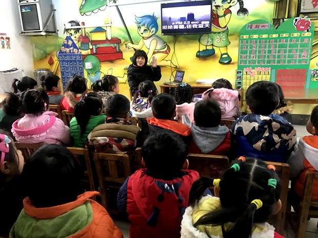 活动中,教师通过图片、视频和课件的方式,让孩子们初步了解了“雾霾”知识,知道雾霾的形成和危害,接着又通过多种互动形式,让幼儿了解可以利用少出行,爱卫生,多吃蔬菜水果补充维生素的方法来简单的自我防护。幼儿园还通过班级校讯通、家长宣传栏等方式向家长宣传了雾霾天的温馨小贴士,比如雾霾天少开窗、避免带幼儿外出、外出时要戴口罩、回到家及时洗脸洗手等。并提醒家长无论以何种交通方式来园,一定注意出行安全。此外,幼儿园将户外活动转向室内,开展形式丰富多彩的室内运动,锻炼幼儿的身体,增强幼儿的体质。教师在日常操作中依据“雾霾”污染程度,合理适时地开窗、通风,确保每位幼儿的健康。