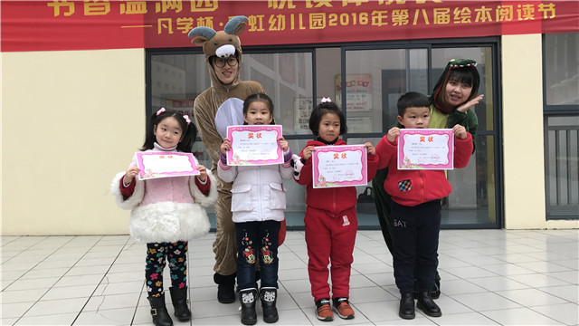 闭幕式上小朋友们喜爱的“牛哥”、“恐龙姐姐”、“恐龙妹妹”再次来到了现场为在各项阅读节比赛中获奖的孩子们、老师们颁发奖状,大家激动的心情溢于言表。