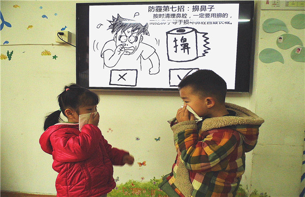 此外,实验幼儿园将户外活动转向室内,开展形式丰富多彩的室内运动,锻炼幼儿的身体,增强幼儿的体质。保育员在日常操作中依据“雾霾”污染程度,合理适时地开窗、通风,确保每位幼儿的健康。