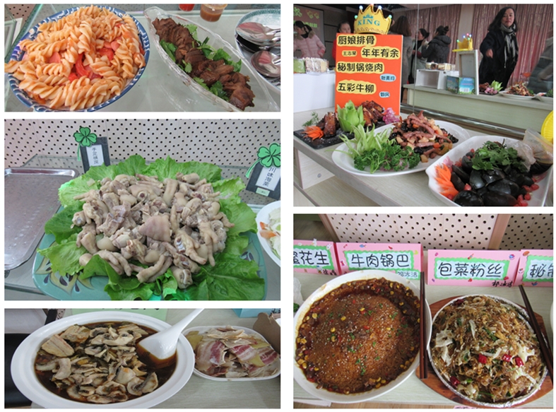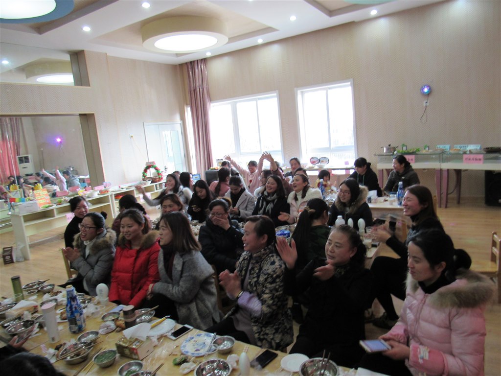 在大家的精心筹备下,每位老师都选择制作了一种或两种美食。会场的美食展示台上,一份份拼盘色香味俱全,大气中不乏精巧,造型独特。煎、炸、蒸、煮、冷拼,饺子、糕点、炸春卷等传统美食;牛排、三明治组合的创意西餐;还有一些家乡风味小吃都激活着大家的味蕾。老师们齐上阵,十八般厨具碰撞出美妙的乐音,写有美食寓意的展示牌跳跃在其间,向大家传递着新年的美好祝福,大家享受着劳动的快乐过程,收获着交流的愉悦。分享品尝之后,老师们现场畅享了“拉歌会”。活动最后,园领导还为大家发放了节日福利。喷香的美食,美妙的音乐,让大家流连回味着新年的喜悦和幸福......